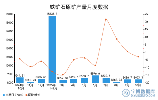 以上就是2025年1-10月全國鐵礦石原礦產量統(tǒng)計,數(shù)據(jù)來源于國家統(tǒng)計局及中國報告大廳數(shù)據(jù)中心整理發(fā)布,僅供參考。