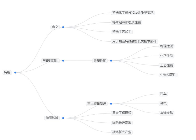技術(shù)創(chuàng)新成為特鋼行業(yè)突破瓶頸的關(guān)鍵,在材料性能、生產(chǎn)工藝等領域的突破持續(xù)縮小與國際先進水平的差距?!?a href="http://www.74cssc.cn/report/17272422.html" target="_blank">2025-2030年中國特鋼市場專題研究及市場前景預測評估報告》指出,特鋼是指具有特殊化學成分和冶金質(zhì)量要求,特殊的組織形態(tài)及性能,采用特殊的工藝手段進行加工的一類用以制造特殊裝備及關(guān)鍵零部件的鋼鐵材料。與普鋼相比,特鋼具有更高的物理性能、化學性能、工藝性能或生物相容性等,因此高品質(zhì)特鋼在汽車、核電以及高速鐵路等重大裝備制造、重大工程建設、國防先進武器和戰(zhàn)略新興產(chǎn)業(yè)中起到關(guān)鍵作用。