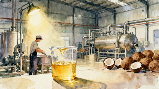 從產(chǎn)品特性看,所有椰子油均屬于植物油,但飽和脂肪酸含量極高,達(dá) 80% 到 90%,遠(yuǎn)高于其他常見(jiàn)植物油。其中,月桂酸是最主要的飽和脂肪酸,占比為 47% 到 54%,此外還包含 18% 的肉豆蔻酸、10% 的棕櫚酸和 2% 的硬脂酸。物理特性上,椰子油在室溫下呈固體稠度,加熱后會(huì)融化成透明液體,這一特性使其在烹飪、烘焙及化妝品領(lǐng)域均能靈活應(yīng)用。