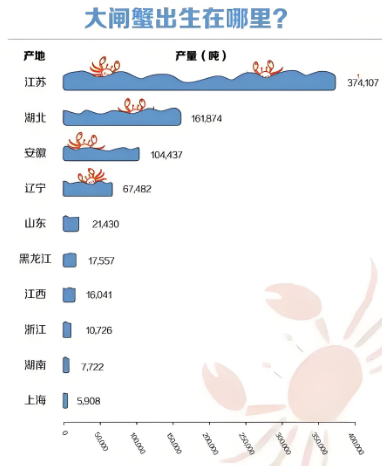 2019-2023年,大閘蟹產(chǎn)量從77.9萬噸增至88.86萬噸,年均增長3.4%。江蘇省作為最大產(chǎn)區(qū),2023年產(chǎn)量40.55萬噸,占比45.63%,但增速放緩至2.1%。湖北、安徽、遼寧等省通過"河蟹良種工程",實(shí)現(xiàn)單產(chǎn)提升15%-20%。