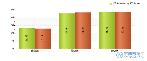| 北柴胡 | 46.93元/斤 | 47.46元/斤 | -1.1% |