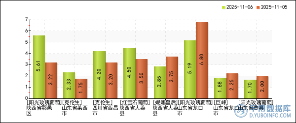 | 山東省龍口市 | 紅寶石葡萄 | 3.00元/斤 | 3.25元/斤 | -7.69% |