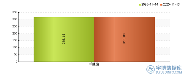 宇博智業(yè)監(jiān)測數(shù)據(jù)顯示,2025年11月14日,全國2類羊肚菌中,僅有羊肚菌的價格出現(xiàn)了下跌,跌幅為0.76%,當日報價為315.65元/斤。