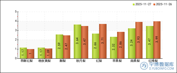 | 秋月梨 | 3.64元/斤 | 3.47元/斤 | 4.6% |