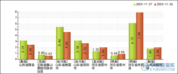 | 山東省平邑縣 | 秋月梨 | 7.23元/斤 | 7.23元/斤 | - |