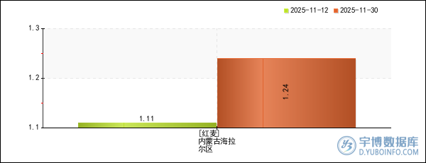 2025年11月29日,宇博智業(yè)大數(shù)據(jù)預(yù)警中心數(shù)據(jù)顯示,內(nèi)蒙古海拉爾區(qū)的紅麥價(jià)格上漲幅度較大,今日?qǐng)?bào)價(jià)為1.24元/斤,較4周前(2025年11月01日)上漲了11.71%,值得投資者重點(diǎn)關(guān)注。