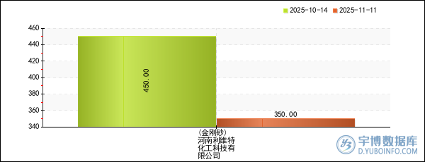 2025年11月11日,宇博智業(yè)大數(shù)據(jù)預(yù)警中心數(shù)據(jù)顯示,河南利維特化工科技有限公司的金剛砂(規(guī)格:0.5-1mm)價格下跌幅度較大,今日報價為350.00元/噸,較4周前(2025年10月14日)下跌了22.22%,值得投資者重點(diǎn)關(guān)注。