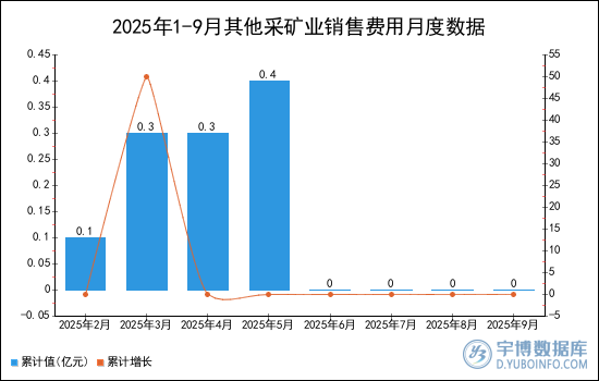 2025年1-5月其他采礦業(yè)銷售費用累計值為0.4億元。