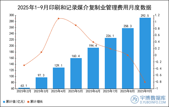 2025年1-9月印刷和記錄媒介復制業(yè)管理費用累計值為292.5億元。
