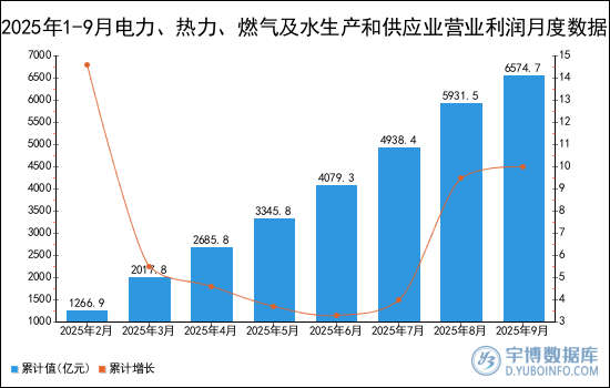2025年1-9月電力、熱力、燃?xì)饧八a(chǎn)和供應(yīng)業(yè)營業(yè)利潤累計(jì)值為6574.7億元,累計(jì)增長10%。