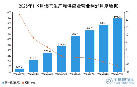 2025年1-9月燃?xì)馍a(chǎn)和供應(yīng)業(yè)營(yíng)業(yè)利潤(rùn)累計(jì)值為595.8億元。
