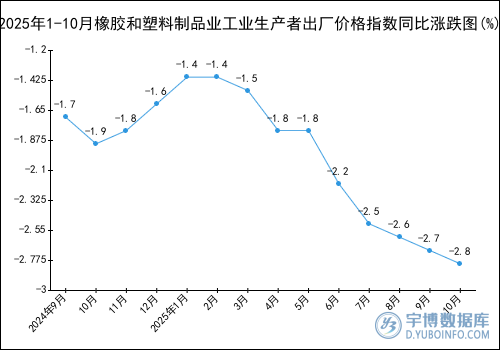 2025年1-10月橡膠和塑料制品業(yè)工業(yè)生產(chǎn)者出廠價格指數(shù)