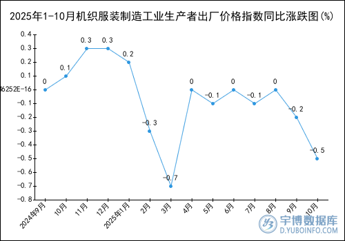 2025年1-10月機織服裝制造工業(yè)生產(chǎn)者出廠價格指數(shù)同比漲跌圖(%)