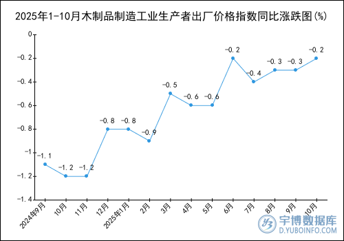 2025年1-10月木制品制造工業(yè)生產(chǎn)者出廠價格指數(shù)同比漲跌圖(%)