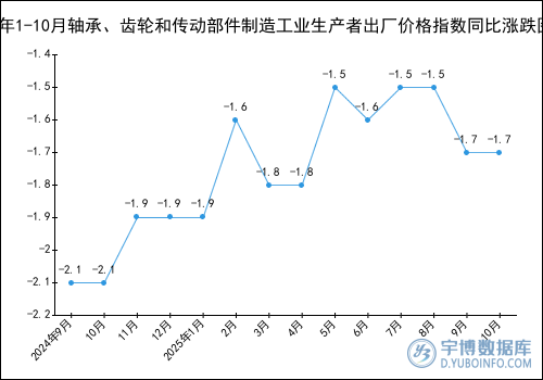 2025年1-10月軸承、齒輪和傳動(dòng)部件制造工業(yè)生產(chǎn)者出廠(chǎng)價(jià)格指數(shù)