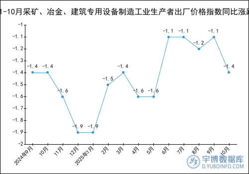 2025年1-10月采礦、冶金、建筑專用設備制造工業(yè)生產(chǎn)者出廠價格指數(shù)同比漲跌圖(%)