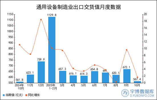 2025年1-10月全國(guó)通用設(shè)備制造業(yè)出口交貨值分月數(shù)據(jù)
