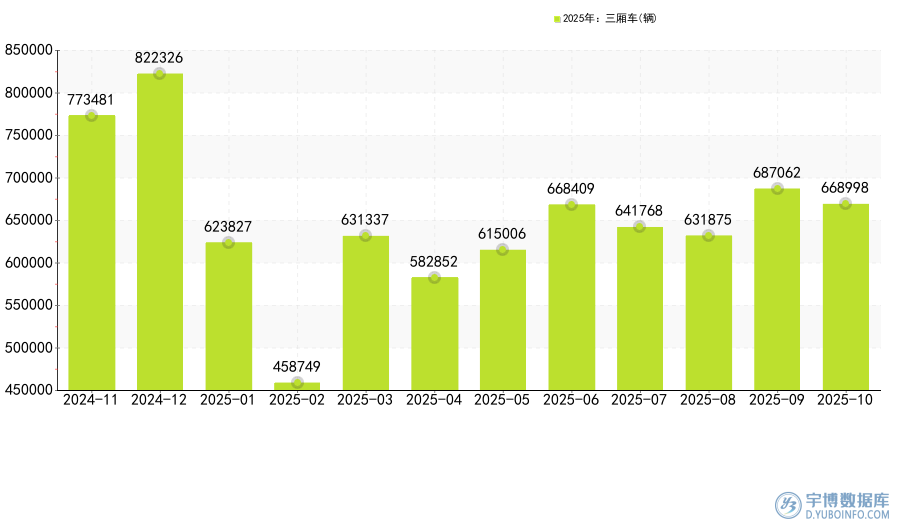 據(jù)報告網(wǎng)監(jiān)測數(shù)據(jù)顯示,2025年10國內(nèi)三廂車銷量為668998輛,環(huán)比下跌了2.63%,銷量減少了18064輛。